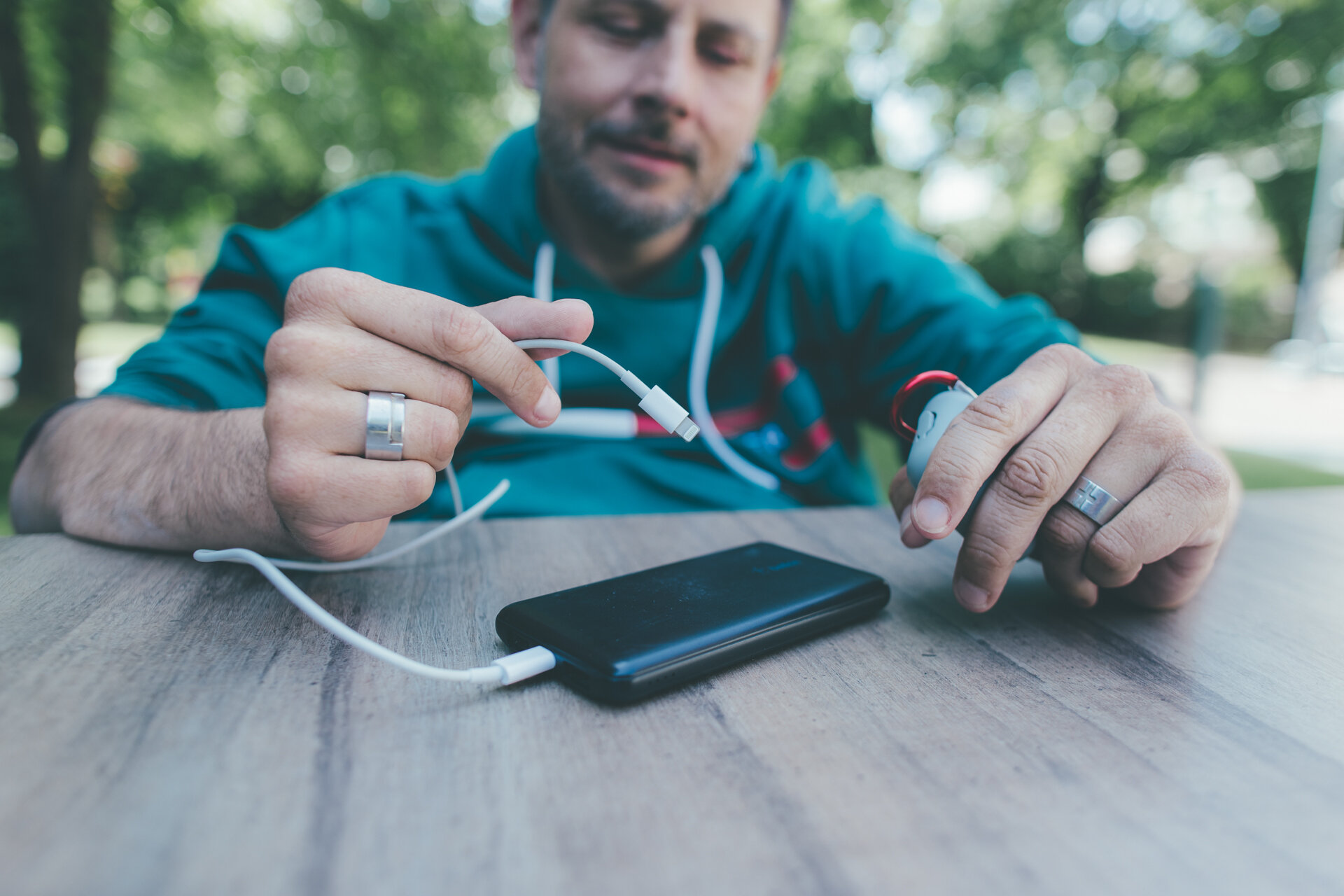 - Pořiďte si nabíjecí dok nebo powerbanku pro usnadnění nabíjení (vyhnete se složitostem při zasouvání nabíjecího kabelu do sluchátek/pouzdra nebo do zásuvky).
