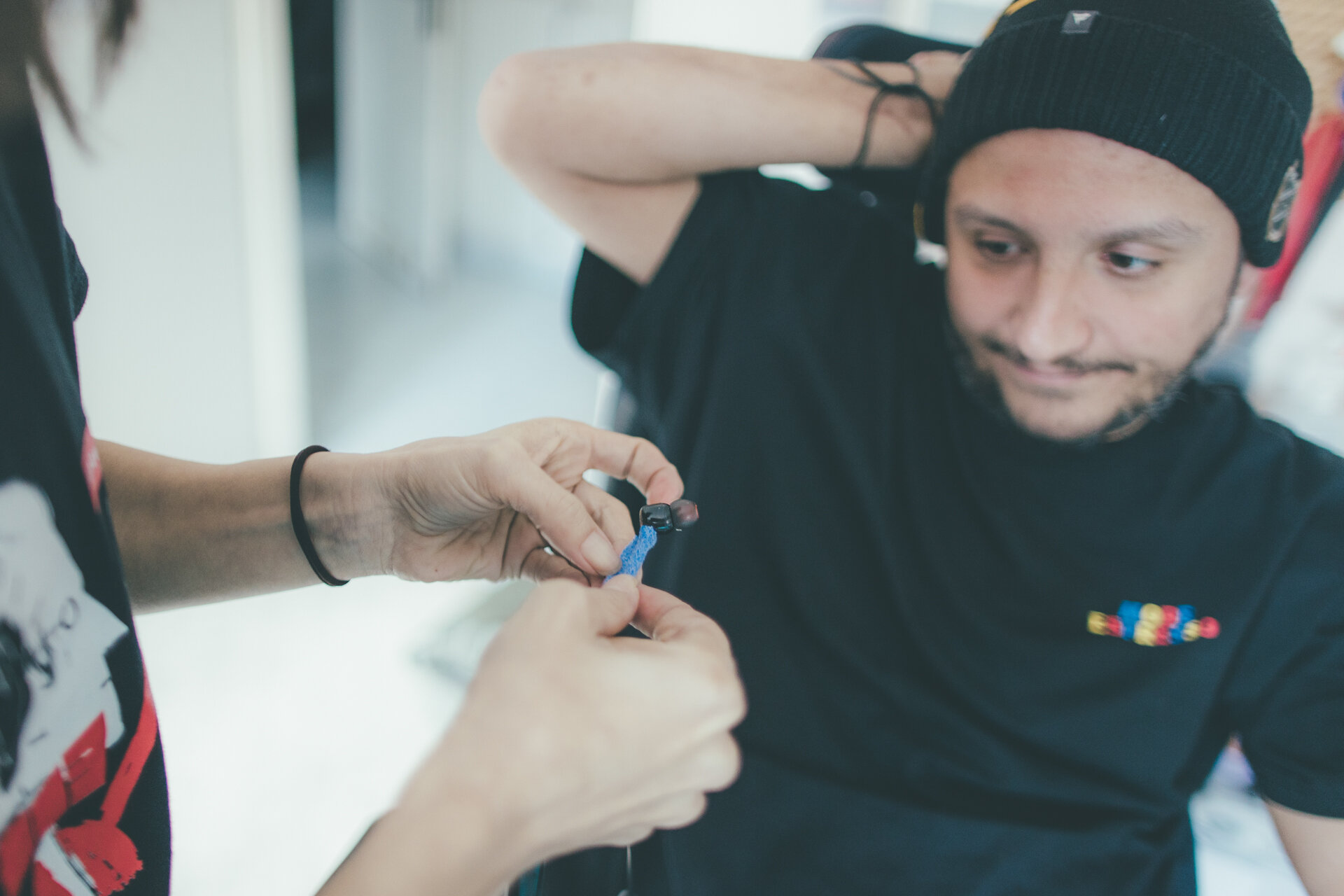 Terapeut ruky pečlivě zhodnotí funkci vašich rukou, způsob úchopu, manipulační schopnosti a probere s vámi vaše další požadavky. Navrhne úpravu předmětu, v tomto případě sluchátek, či vytvoření individuální pomůcky. Nejprve jde o testovací verzi (z termoplastu). Po jejím vyzkoušení a potvrzení „správné cesty“ se pustí do vytvoření finálního produktu. K tomu může využít množství různorodých materiálů – od klasické kůže přes měkké ortotické materiály, silikonové hmoty, protiskluzové materiály, termoplasty nebo kovové komponenty.