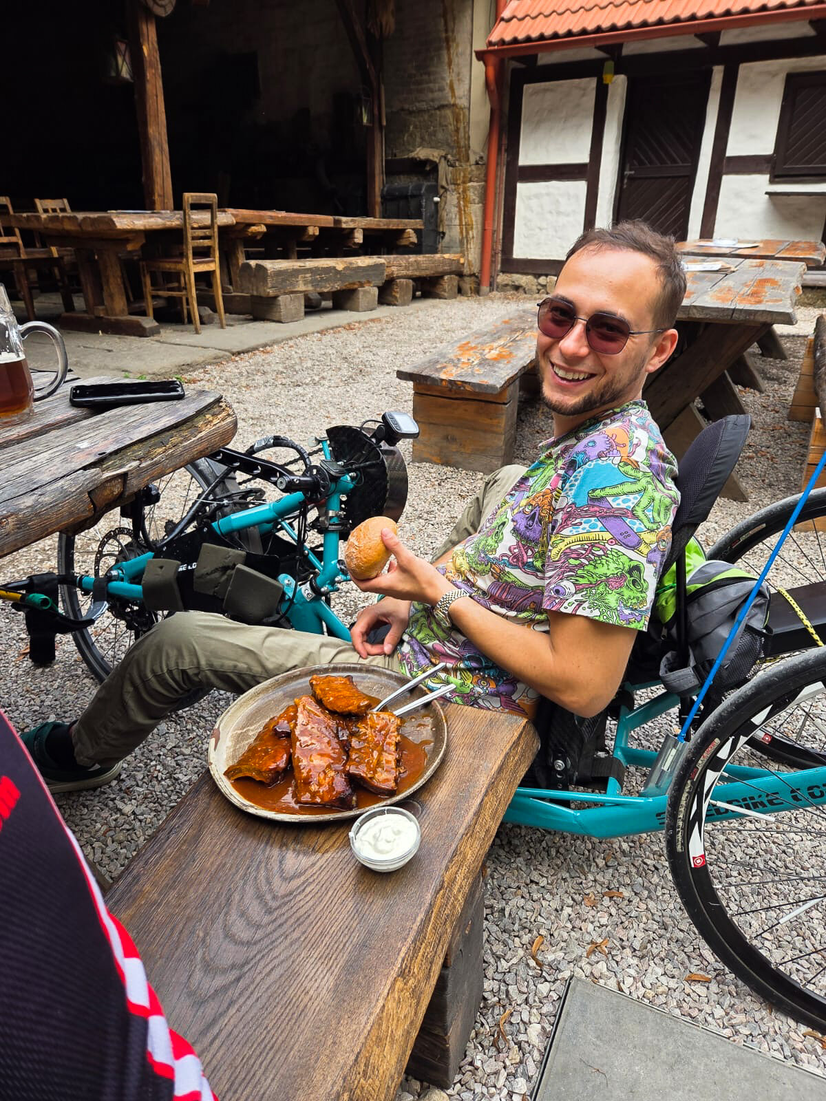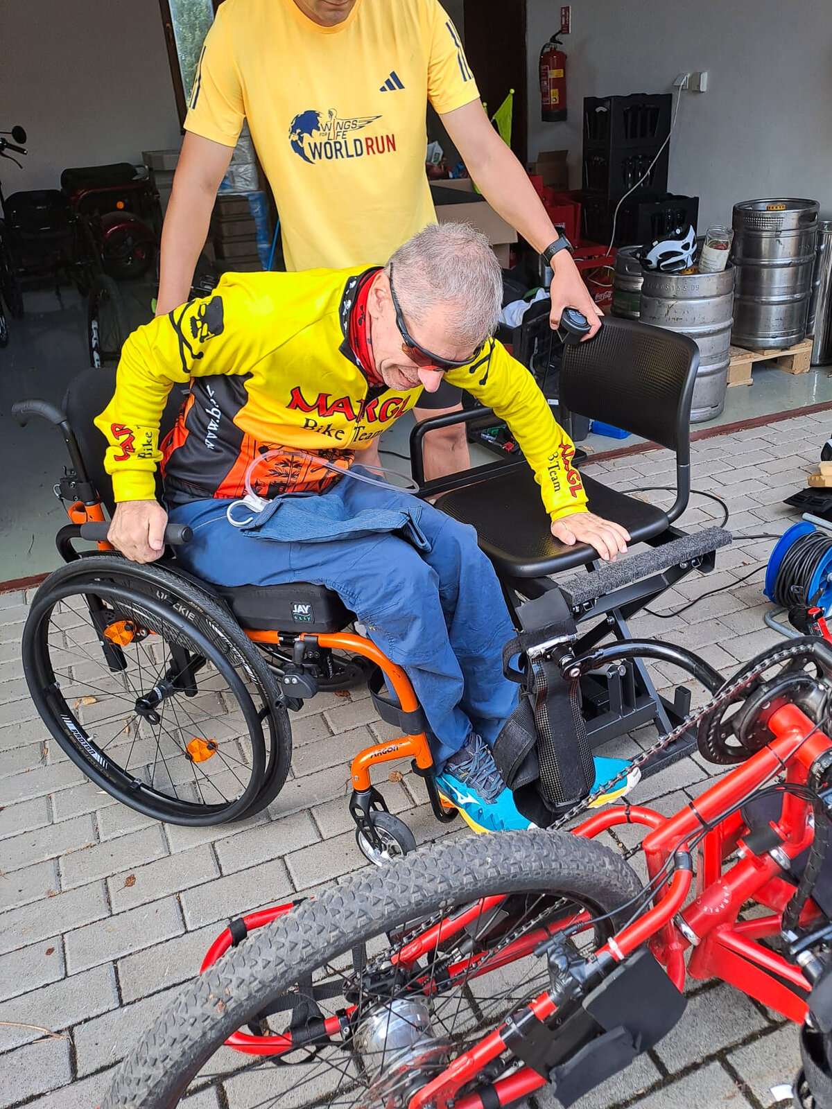 Po příjezdu klientů následovalo nastavení handbiků a zkušební tříkilometrový okruh v okolí hotelu. Každý den pak začínal společnou rozcvičkou a po snídani jsme vyráželi v různých skupinách na výlety. Účastníci byli rozděleni podle výkonnosti – zatímco většina skupin absolvovala denně 30–40 km tras, zdatnější jezdci zvládli i 80 km dlouhé výpravy, například do Českého ráje.